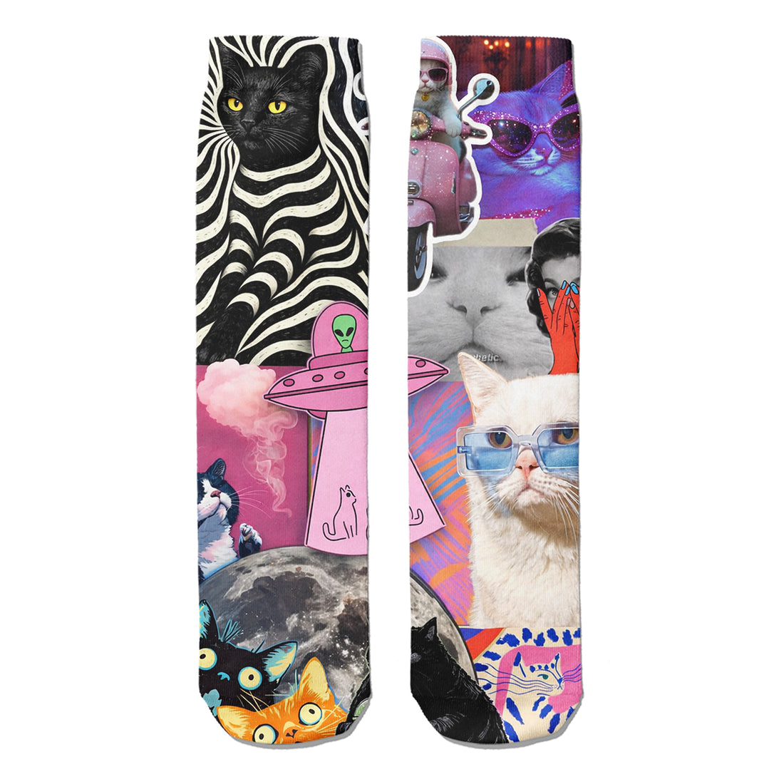 Kolaj Kediler Dijital Baskılı Soket Çorap % 53 Koton-% 45 Mikro Polyester-% 2Elasten Ürünlerimizin Confidence...