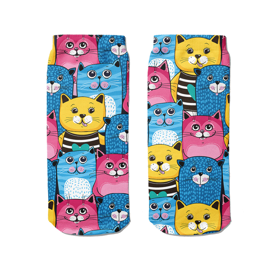 Renkli Kediler Dijital Baskılı Patik Çorap % 53 Koton-% 45 Mikro Polyester-% 2Elasten Ürünlerimizin Confidence...