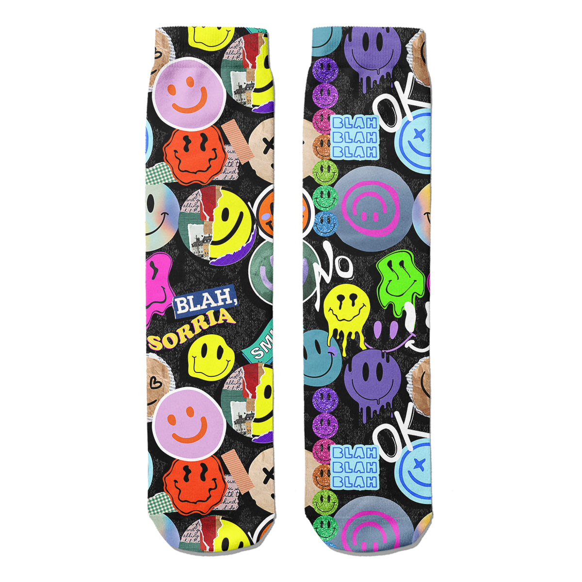 Happy Face Smile Dijital Baskılı Soket Çorap